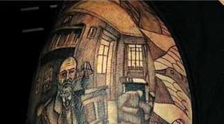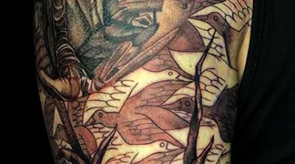 M C Esher is known for his unique Mindscapes. This is one where he is looking at himself in a mirror